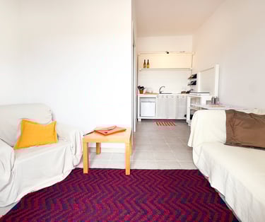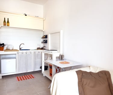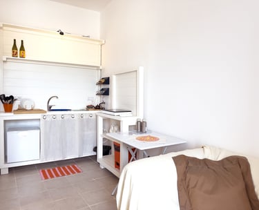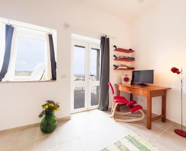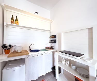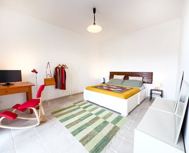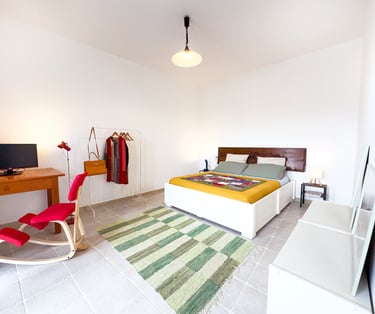 Furnished with a queen size bed, a writing desk to work or to write poetry ( if you feel inspired by the ambience , and a big, comfortable armchair to relax and read. It has its own kitchen and bathroom.